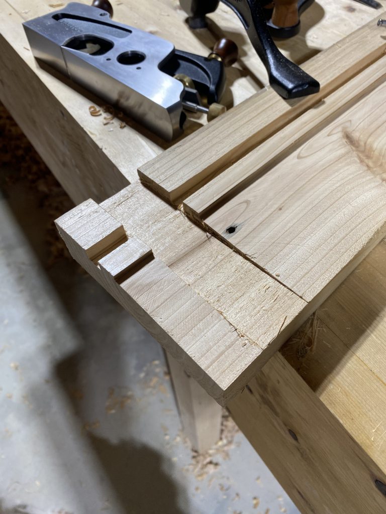 Now that I had the lumber, I needed to work out a design for them. I wanted to replicate some of the frames we had seen on other barns from that time period to bring back some of history. The frames had a stopped dado in the top and bottom for the sides of the frame to sit inside of. Laura also suggested that I bevel the lower frame board so that rainwater would be inclined to run off. The bulk of the machining was done with power tools – but when it got to the bottom dado and bevel, I roughed them out at the saw and then used chisels and planes to get things where they needed to be…